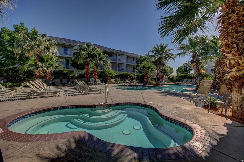Updated Las Palmas Resort condo. The ground floor unit has easy access. Enjoy the view of the pool area from your back patio. New HV/AC unit saves you lots of money. Approved for nightly, weekly, long term rentals or as a vacation home. Great amenities, 5 pools, tennis courts, playgrounds, biking trails, etc means you can vacation right out your door. Furnished and ready to go. Call agent for availability to show.