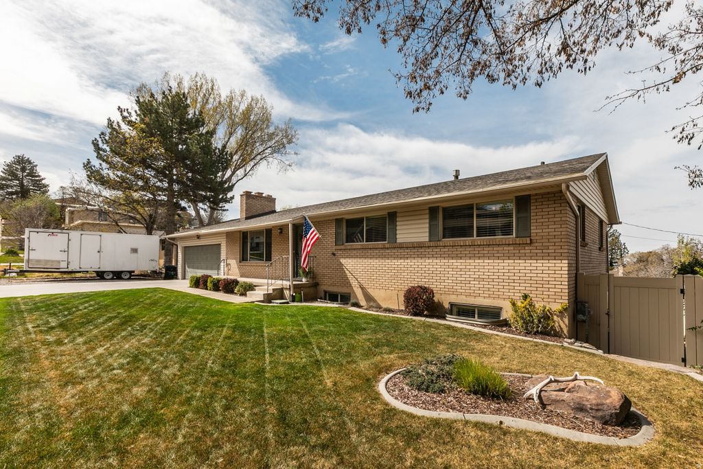 Beautiful Brick Rambler nestled in the highly sought-after Bountiful foothills, this stunning 3-bedroom 3-bath home offers breathtaking views of the mountains, valley and lake. Meticulously maintained, this home is clean, inviting and move-in ready. The three spacious bedrooms can easily be converted into a five bedroom layout providing flexibility to suit your needs. Enjoy a professionally landscaped yard featuring an upgraded sprinkler system, a private backyard retreat, mature fruit trees, a covered patio, and a brand new trex deck - perfect for relaxing or entertaining. The property also includes RV parking and a spacious storage area beneath the garage, providing plenty of room for all our gear and toys. Inside you'll appreciate the comfort of newer HVAC and water heater systems, providing efficiency and peace of mind. Conveniently located near top-rated schools, shopping, dining, and transportation, with easy access to nearby hiking and biking trails for outdoor enthusiasts. This an opportunity to own a home in one of Bountiful's most desirable areas - don't miss it! For highlights please select the Tour button.