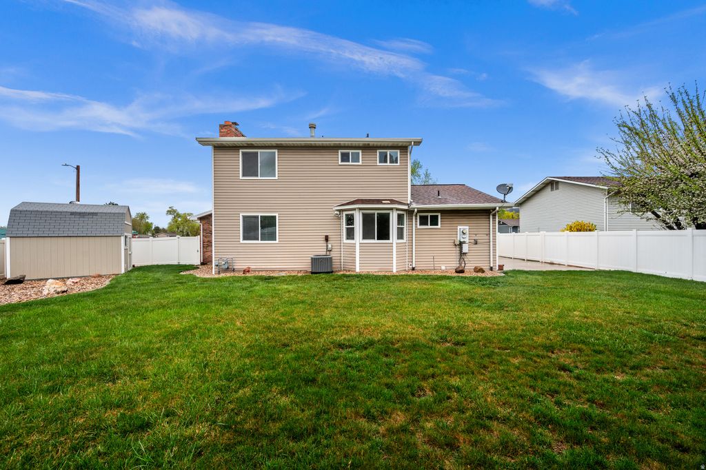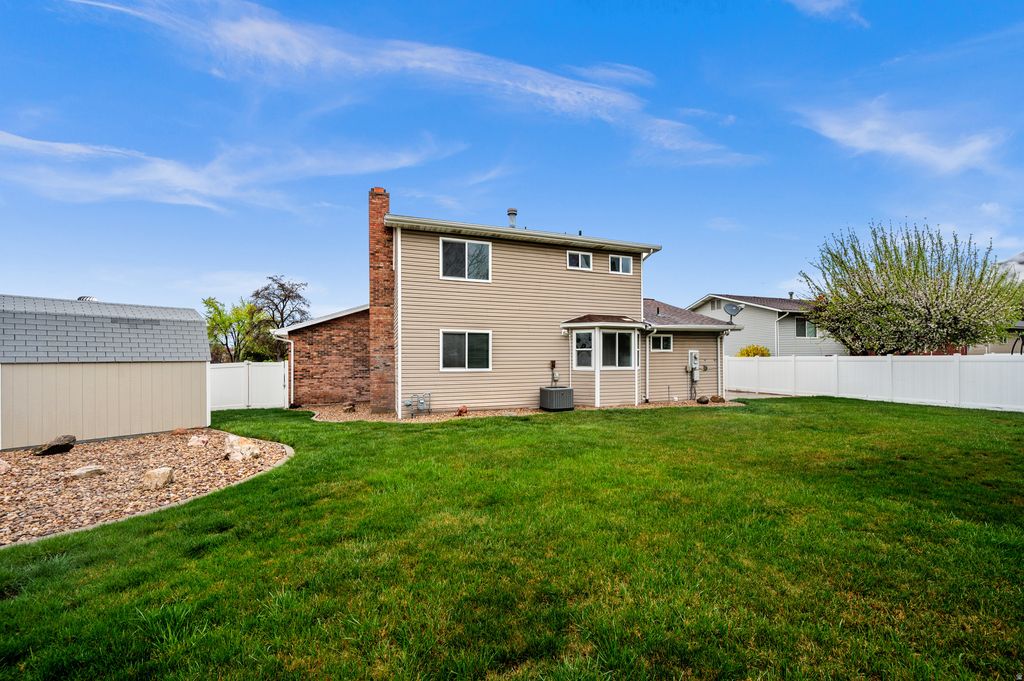 This beautifully maintained home sits proudly on a spacious corner. From the moment you pull up you'll notice the pride of ownership. Newer siding, windows and roof combine with a sleek Xeriscaped yard perfect for Utah's climate. The two story layout offers generous living spaces, ideal for everyday living & entertaining. While upstairs bedrooms provide privacy and comfort. Step out side to a private fully fenced back yard with beautiful mountain views. This home delivers the perfect blend of location, updates, and lifestyle. You will appreciate the peace of mind that comes with a brand new water heater, and HVAC. Square footage figures are provided as a courtesy estimate only. Buyer is advised to obtain an independent measurement.