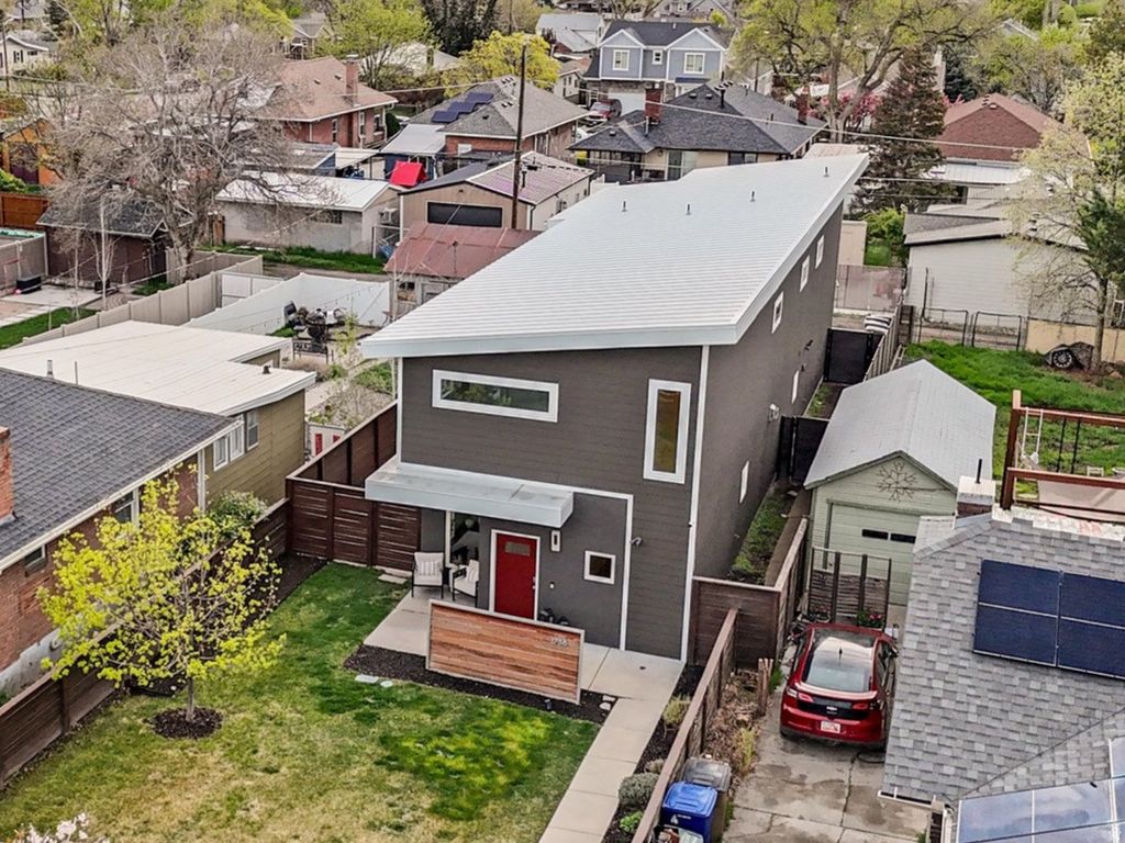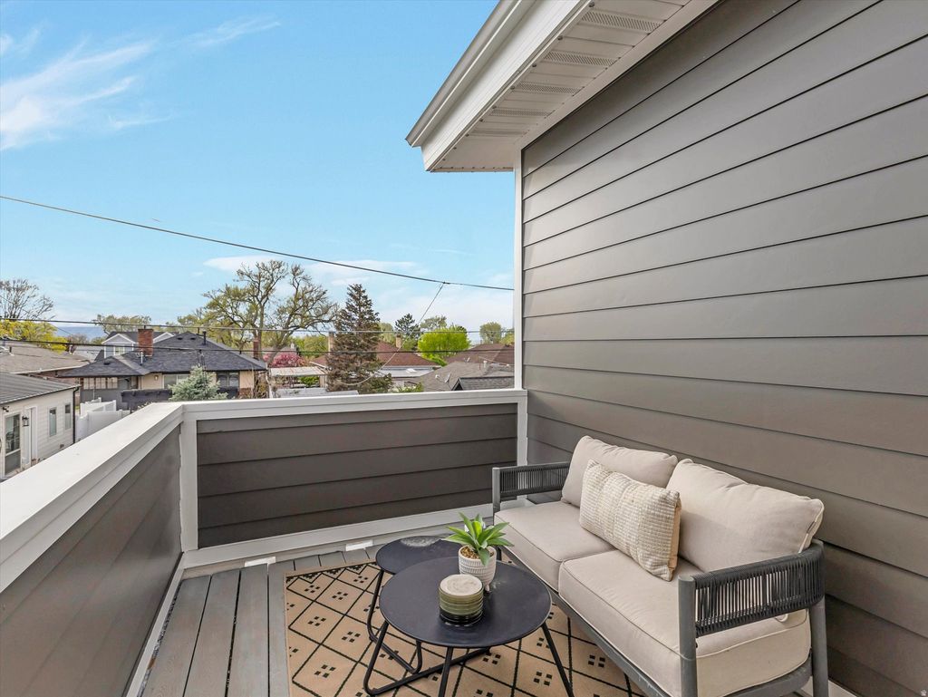 Perfectly blending modern design, thoughtful upgrades, and an unbeatable location, this sleek contemporary home is ideally situated in one of Sugar House's most sought-after neighborhoods. Just a short walk from the famous Sugar House business district, you'll enjoy easy access to popular shops, restaurants, and cafs, as well as the S-Line, Sugar House Park, Fairmont Park, and Parley's Trail. Built in 2013, this carefully designed home features an open-concept layout with a bright, inviting aesthetic accented by large sun-filled windows, hardwood floors, tall ceilings, recessed lighting, clean architectural lines, and stylish upgraded finishes. Recent updates include a new metal roof, new windows, and new interior and exterior paint. At the heart of the home is the gourmet kitchen, perfect for cooking, entertaining, and gathering. It is well appointed with quartz countertops, ample custom cabinetry, a walk-in pantry, stainless steel appliances, a double oven, a gas range with a range hood, and a stylish tile backsplash. The large center island, illuminated by pendant lighting, provides additional seating and workspace. The main floor also offers a spacious great room, a dining area that opens to the patio, a half bathroom, and a unique spa-inspired wellness room. This versatile space features an oversized shower and a cold plunge and could also function as a mudroom, pet washing station, or private spa area. As a bonus the seller is including a sauna to enhance the wellness possibilities. Upstairs is finished with newer wool carpet and the well-designed layout includes all four bedrooms and the laundry room. Windows throughout the upper level frame beautiful mountain views. The grand primary suite boasts vaulted ceilings, abundant natural light, a private balcony, and a generous walk-in closet. The luxurious ensuite bathroom offers a soaking tub, a double vanity, sleek tile finishes, a large walk-in shower, a private commode room, and a new sliding barn-style door. Step outside to a private, fully fenced yard featuring a lush lawn, a patio for outdoor dining, a front sitting porch, flower beds, a new sprinkler system and a completely enclosed dog or cat run. Major system upgrades include a new tankless water heater, new water filtration system, water softener, high end air filtration system, new AC unit, a video security system, new Jellyfish accent lighting, a 5.2 sound system installed in the ceiling of the living room, sauna, and cold plunge areas. Park cars or bikes in the spacious two-car garage equipped with a new garage door opener, new epoxy coated floor and a BMW EV charger. You can store your extra gear in the newly painted backyard shed. This premium Sugar House address is also conveniently located near the University of Utah, Westminster University, downtown Salt Lake City, Liberty Park, world-class ski resorts, and the Salt Lake City International Airport.
