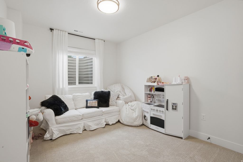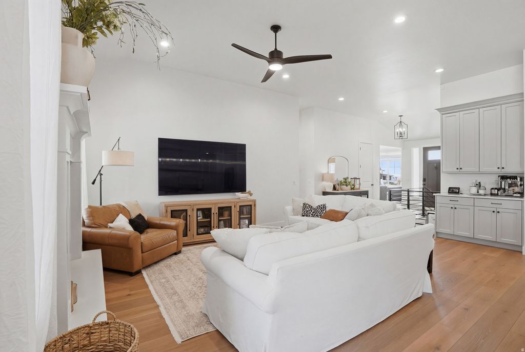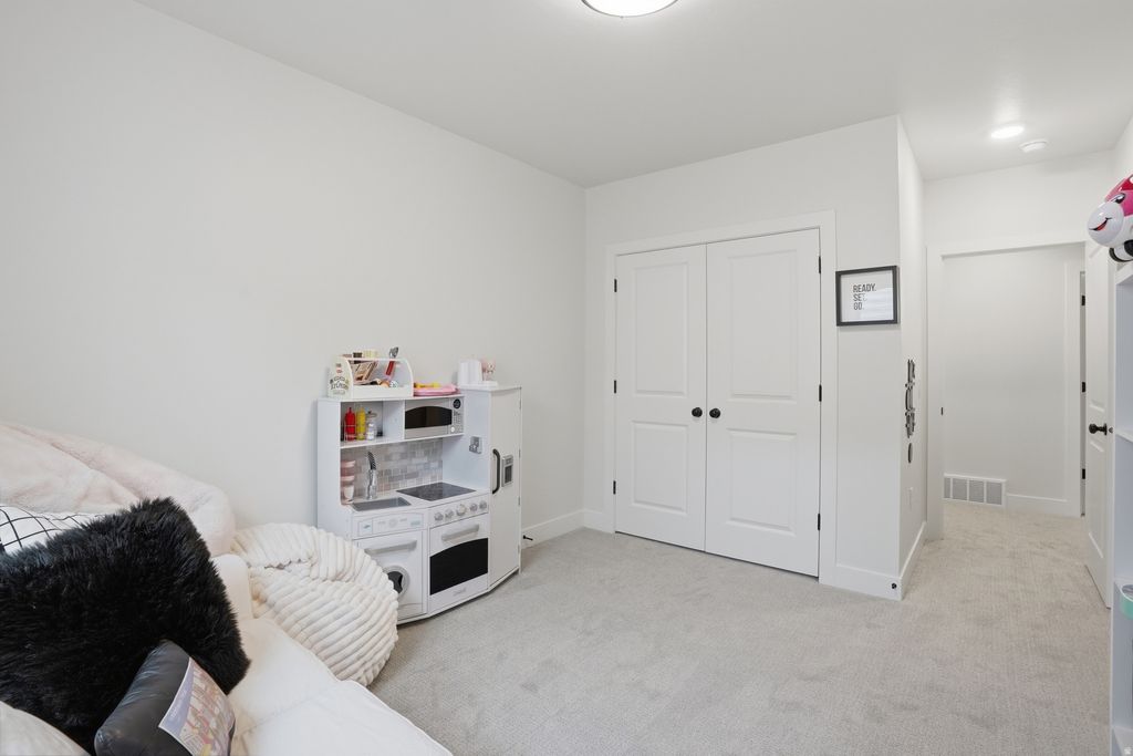 Like-new and fully upgraded, this craftsman-style rambler in one of West Jordan's most desirable areas offers elevated finishes and stunning Wasatch Mountain views. Built just last year, the highly sought-after Concerto XL plan by Symphony Homes delivers the feel of new construction-without the wait. The main level features vaulted ceilings and an open-concept layout centered around a spacious kitchen with quartz countertops, abundant cabinetry, and seamless flow into the living and dining areas. Thoughtful upgrades like designer millwork, a built-in mudroom bench, and a tray ceiling with crown molding in the primary suite elevate the space while maintaining functionality. The 9' basement creates a bright, open lower level with a large game room and is already plumbed for a future wet bar, offering flexibility for entertaining or additional living space. Step outside to a fully finished backyard with a large patio, full fencing, and a dedicated RV pad-plus access to a fantastic community pool, all with a low HOA. Additional features include solar panels, Google Fiber, a water softener, reverse osmosis system, and permanent holiday lighting-providing efficiency, convenience, and long-term value. Truly turnkey and move-in ready.