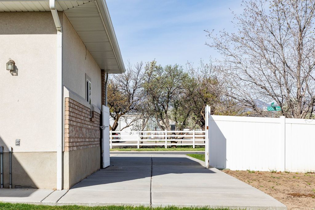 Beautiful rambler in a quiet neighborhood, ideally located across from open horse property for added privacy and a rare "edge of the neighborhood" feel. The main level features a spacious primary suite, two more bedrooms, and a versatile den, with new carpet and abundant natural light throughout. The fully finished basement is ideal for a mother-in-law apartment, multi-generational living, or potential rental income with three additional bedrooms, a full kitchen, and a separate walk-out entrance. Enjoy the fully landscaped yard with a huge garden area, shed, fruit trees, and large patio. The three-car garage offers an extended third bay, ample overhead storage, and outdoor RV parking. Major updates include a new furnace, A/C, and water heater for added comfort and peace of mind. Only minutes from Jordan Landing with shopping and restaurants, schools, parks and easy access to highways. Private, peaceful living just a short drive from everything you need. Square footage figures are provided as a courtesy estimate only, buyer is advised to obtain an independent measurement.