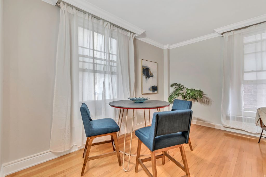 Welcome to The Belvedere, one of Salt Lake City's most iconic historic buildings. Originally built in 1919 as a grand hotel and thoughtfully converted into condominiums in 1978, this timeless residence offers a rare blend of classic Art Deco elegance and modern-day convenience in the heart of the central business district. Step inside the secured entry and hear the echo the building's glamorous past. This quiet corner-unit 1-bedroom, 1-bath condominium maximizes every inch of its approximately 600 square feet, offering both privacy and an intelligently designed layout. Large windows flood light throughout every room. There is generous storage, and an inviting flow through the condo creating spaces that are both functional and refined. It's perfect for everyday living or hosting before a night out downtown. Location is everything and this is one of the best! Just steps from City Creek Center (connected via a convenient pedestrian tunnel) and directly across from Harmons Grocery, you're surrounded by premier shopping, dining, entertainment, nightlife, fitness, and public transit. In addition, near transit to the University of Utah. Enjoy the ease of truly walkable urban living, with everything you need right outside your front door. Covered parking is available for rent directly behind the building for those who need it, though you may find a car is optional in this unbeatable location. The HOA adds exceptional value by covering all utilities except electricity, simplifying your monthly expenses and enhancing ease of living. True to its name, Belvedere, meaning "beautiful view". This residence offers not just a home, but a lifestyle defined by history, light, walkability, and timeless design.