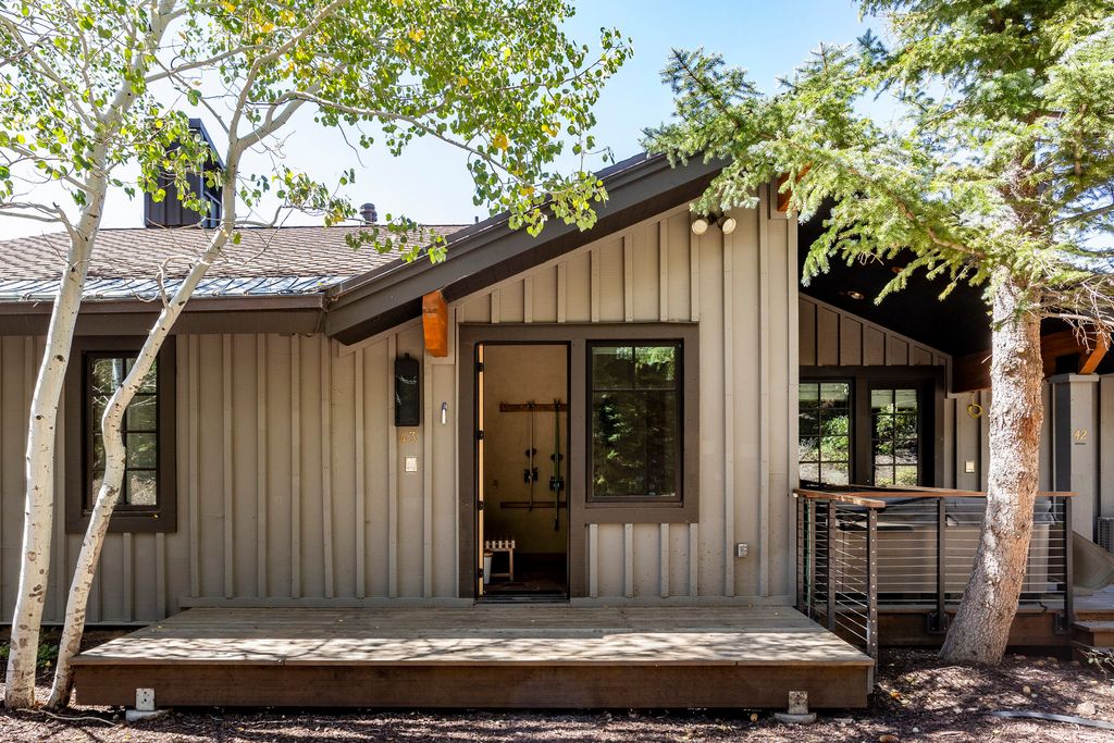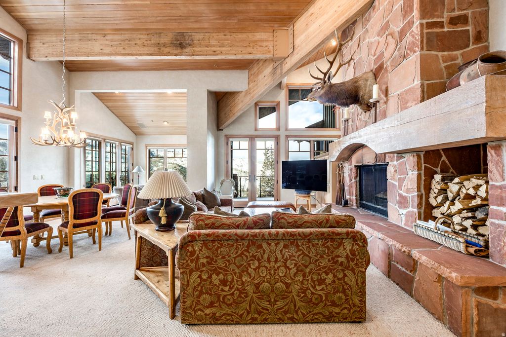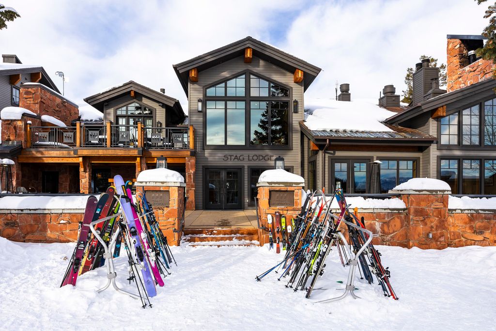 Stag Lodge #43 is a premier ski-in/ski-out residence in Deer Valley, positioned at the east end of the community where it borders open space and offers rare, unobstructed views of the surrounding mountains from nearly every window. This five-bedroom property stands out for its privacy, views, direct access to the "Success" ski run, and timeless mountain architecture. With over 4,700 square feet spread across four levels and served by an elevator, the home features vaulted ceilings, wood-burning fireplaces, multiple decks, a 1,100-bottle wine room, a dedicated ski and bike tuning workshop, a ski prep room with private trail access, and a two-car garage. A unique studio/apartment above the garage offers incredible flexibility for guests. The upper-level primary suite includes a wood-burning fireplace, generous bathroom, walk-in closet, and laundry. Owners at Stag Lodge enjoy an array of amenities including a fully staffed front desk with concierge service, ski valet, a private restaurant and lounge, heated pool and spa, fitness center, and on-call transportation. Offering a nostalgic and luxurious ski ambiance, this is a rare opportunity to secure a legacy property in one of Park City's most beloved mountain communities.