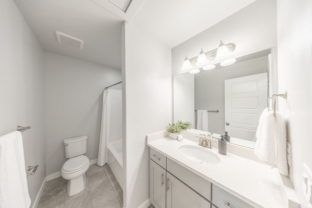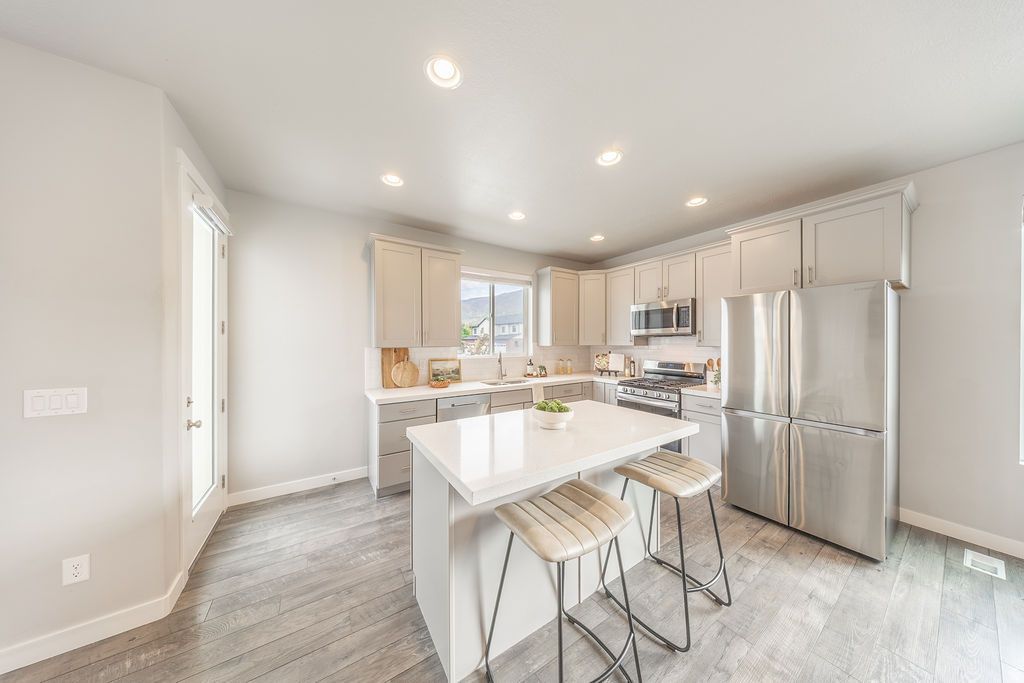 NO SHOWINGS UNTIL OPEN HOUSE SATURDAY APRIL 18 10AM-1PM. This move-in-ready home combines modern updates with a cozy living space. The location is ideal, just minutes from I-15 with numerous nearby options for shopping, dining, and entertainment. The open-concept layout features a large kitchen with quartz countertops and an expansive pantry alongside a bright dining area and generous living room with a gas fireplace. The primary suite includes a walk-in closet and en suite bathroom with dual vanities and a separate shower. A second full bathroom and four additional bedrooms (or office/flex spaces) provide versatility for kids, guests, or work-from-home needs. Recently installed upgrades include additional overhead garage storage, a radon mitigation system, and a fully plumbed water softener. Square footage figures are provided as a courtesy estimate only and were obtained from county tax records. Buyer is advised to obtain an independent measurement.